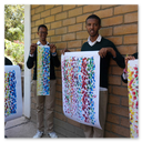 Eineinhalb Jahre später machte sich Klaus Kühn auf den Weg – im Gepäck einen Koffer mit 120 Stofftaschen, Farben und dem passenden Siebdruckmaterial um die Taschen zu bedrucken. Weitere Stoffbeutel hatten die Schüler der Schule vorher schon selbst genäht. Ein gemaltes Bild aus dem Workshop wurde als Druckvorlage verwendet.
