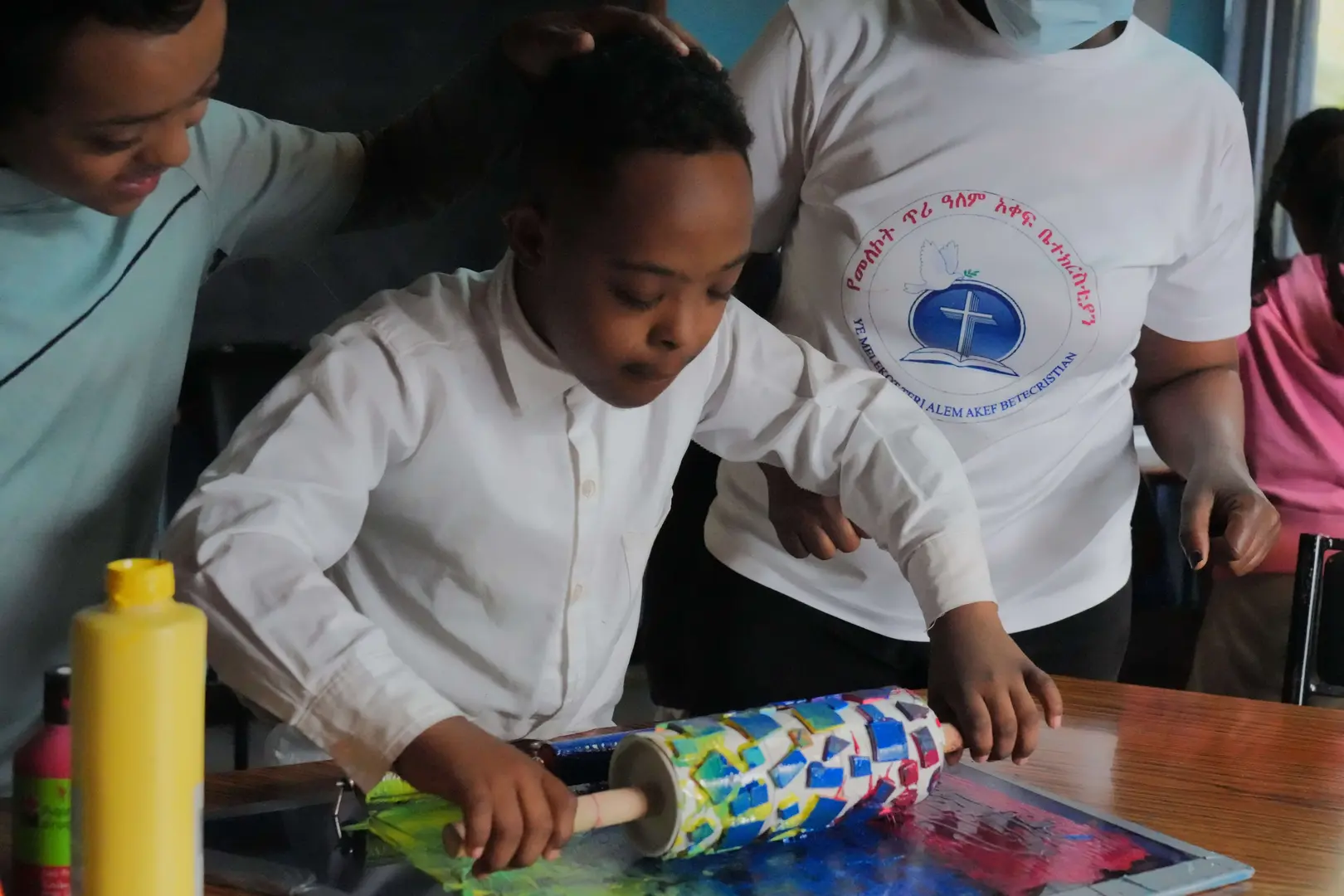 Im Herbst 2014 (siehe unten) entstanden in einem Malworkshop verschiedene Bilder mit Doris Bornhäuser (der Gründerin der Schule für geistigbehinderte Kinder und Jugendliche - Center for mentally challenged children in Addis Ababa, Ethiopia) und Christoph Schmidt, der von 2003 -2010 als Berater in der Schule tätig war.